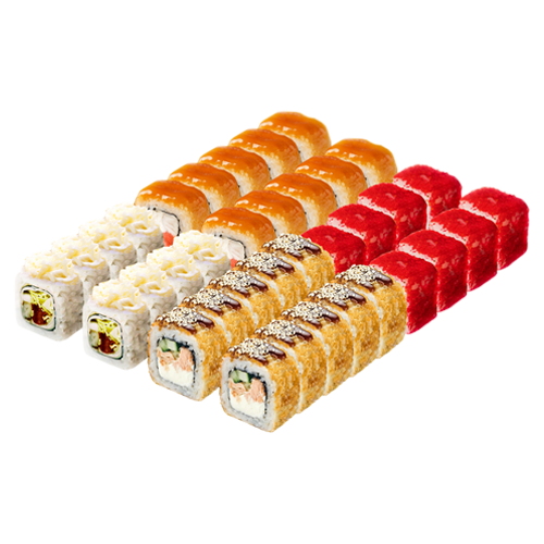 Нью-йорк, Тайсон, Бонита, Горячий сыр, огурец, лосось жареный, Горячий сыр, краб, огурец.
