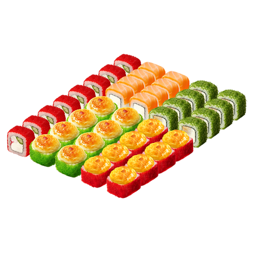Кани темпура, Цезарь с лососем чиз, Классический ролл с яблоком и сыром.